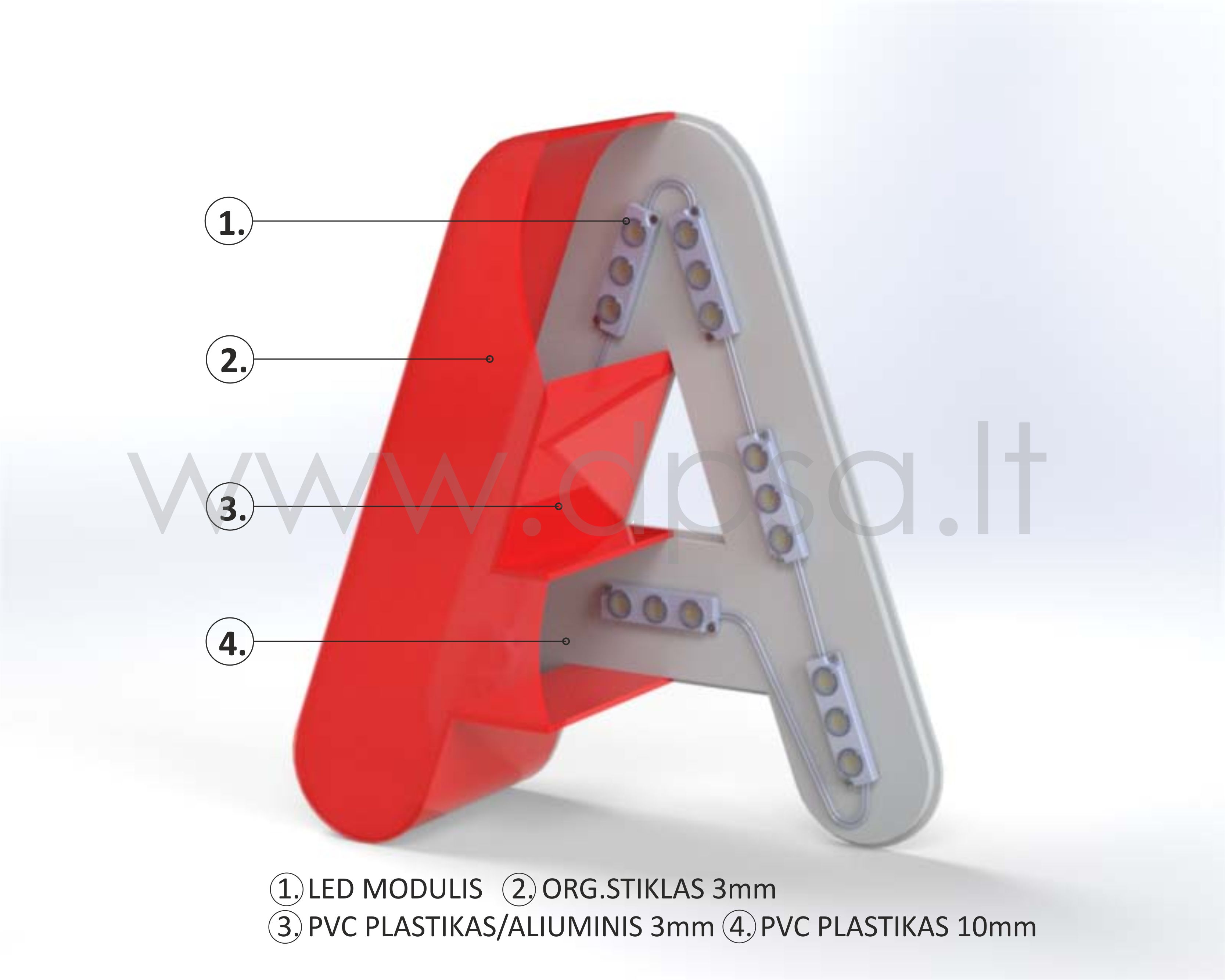 Telpiskos burtus ražojam no organiskā stikla, LED moduļiem, PVC plastmasas un alumīnija. Tie ilgus gadus saglabā skaistumu, un ir uzticami. Reklāmas apgaismojumam izmantojam LED moduļus, kas patērē līdz 10 reizēm mazāk elektroenerģijas nekā dienas gaismas vai neona lampas.